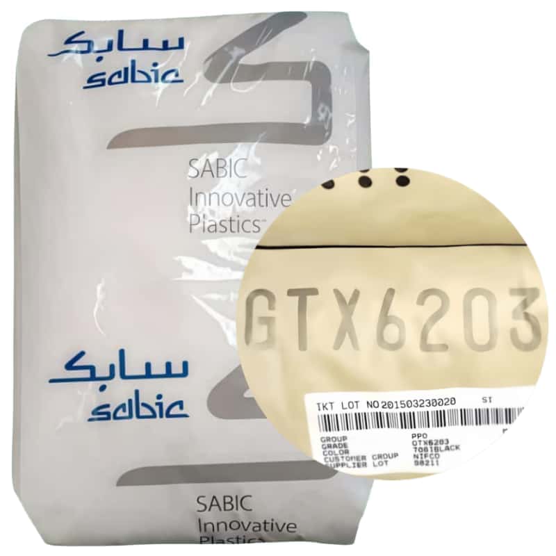 Noryl GTX6203 resin is a 20% mineral reinforced alloy of Polyphenylene Ether (PPE) + Polyamide (PA). This injection moldable grade has low co efficient of thermal expansion (CTE), excellent processability, superior dimensional stability, and good surface appearance.